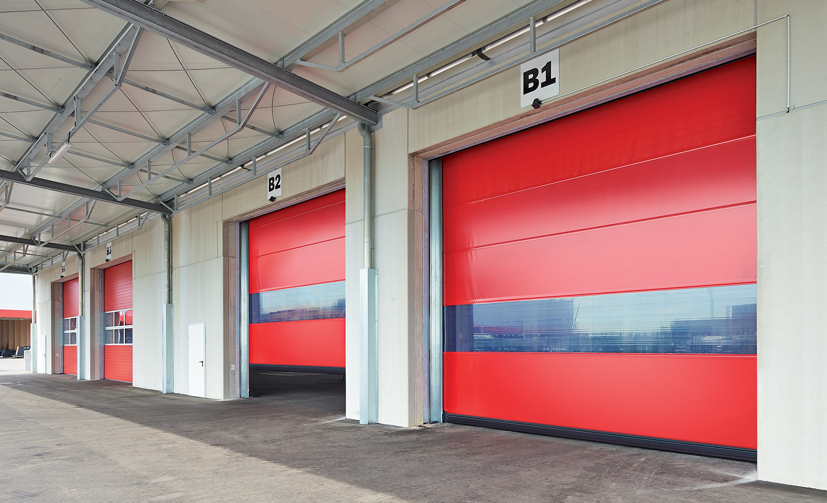 Hörmann High Speed Doors optimize the flow of traffic, improve room conditions and save energy. The range includes both vertically and horizontally opening transparent doors with a flexible curtain. They are available in combination with sectional doors and rolling shutters, as well as with service-friendly spiral doors with smooth aluminum profiles. These doors also come with a powerful Frequency Converter Control (FU) as standard, which considerably extends the lifespan of the door’s working parts.